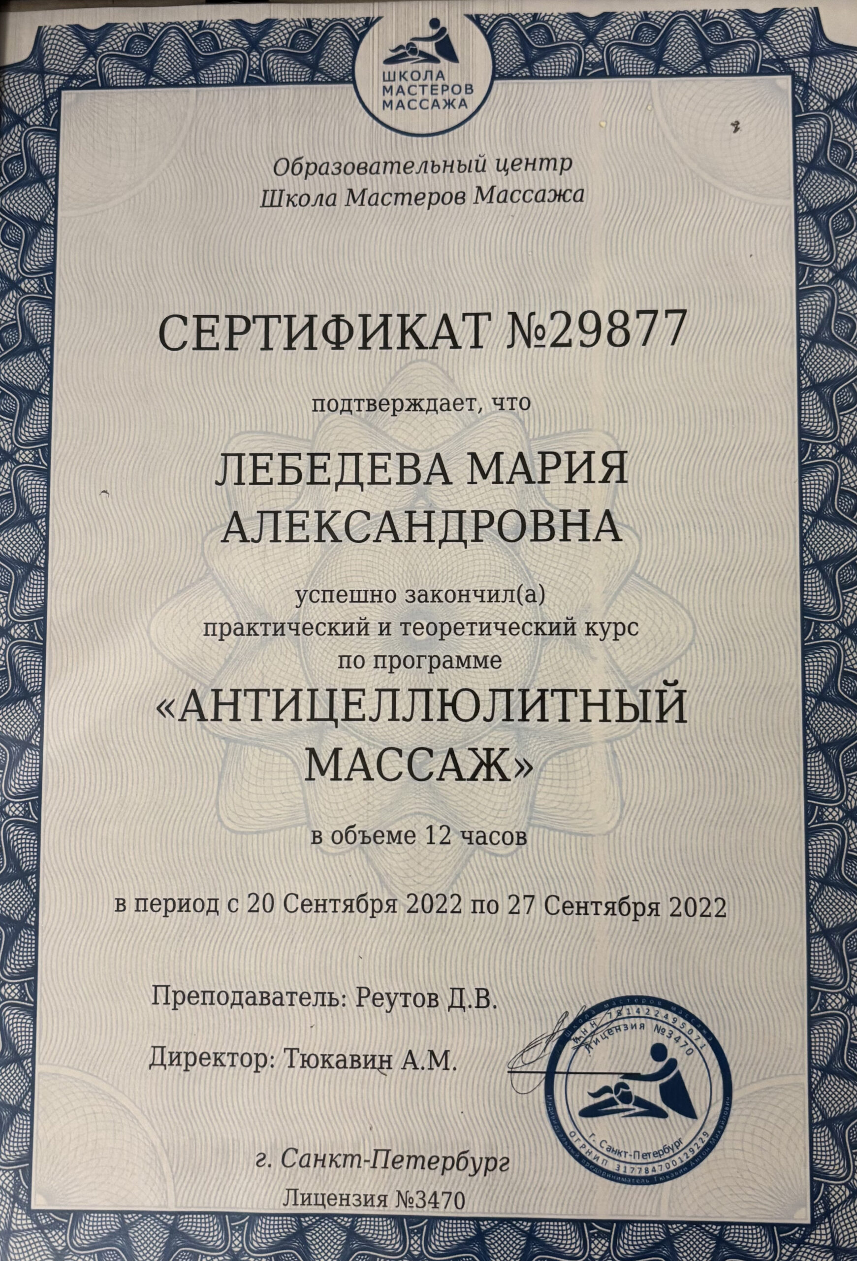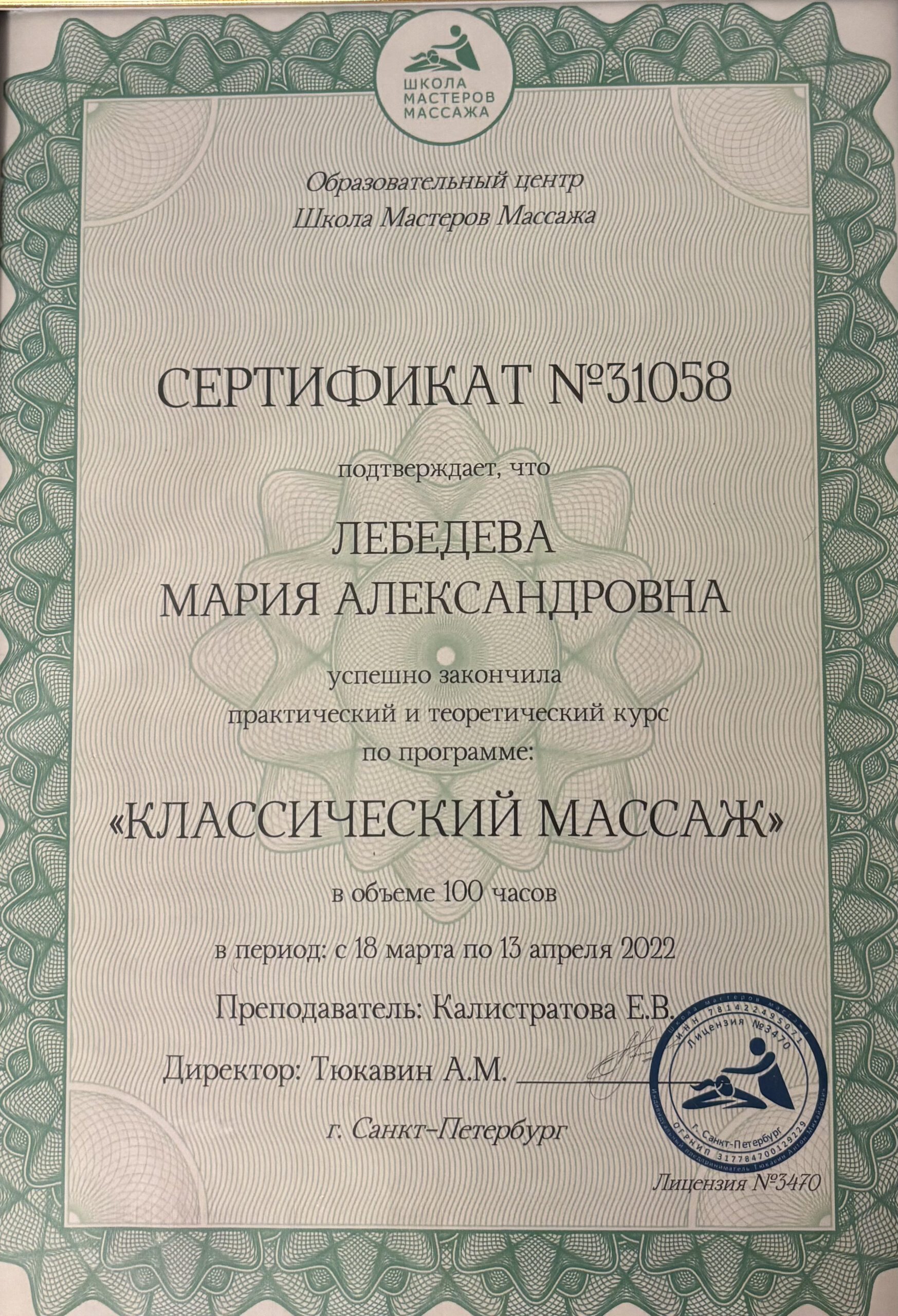 Начинала свою карьеру массажиста 3 года назад с классического массажа, затем антицеллюлитный массаж, массаж лица, спортивный и один из моих самых любимых массажей-ортопедический массаж для коррекции биомеханических нарушений шейного отдела позвоночника и церебральных дисфункцй.